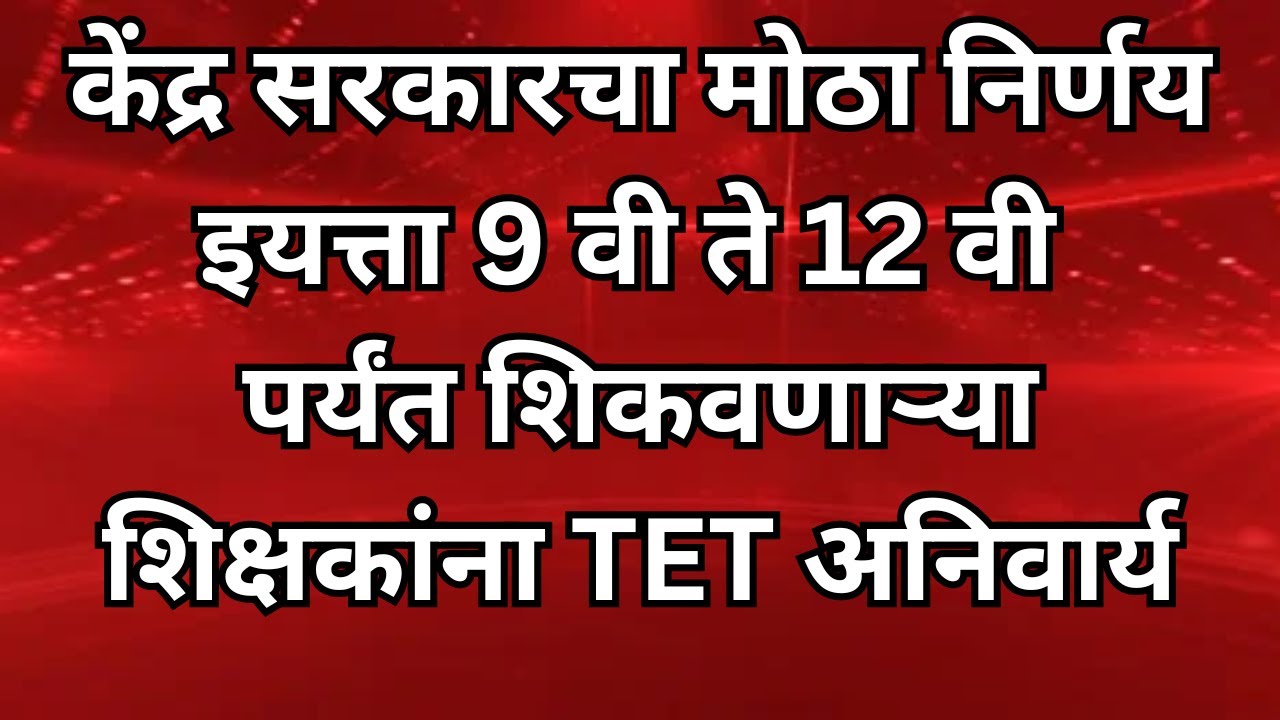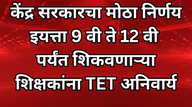 केंद्र सरकारचा मोठा निर्णय, बारावी पर्यंत शिकवणाऱ्या शिक्षकांना पुढील सत्रापासून TET अनिवार्य…