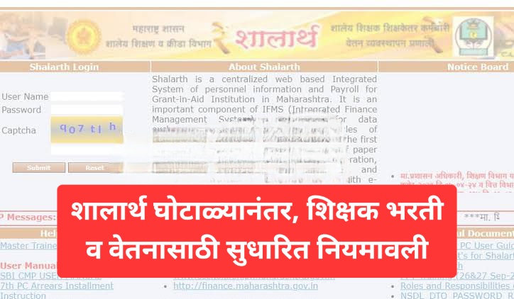 Read Moreशालार्थ आयडी घोटाळ्यामध्ये शिक्षण विभागाने आता शिक्षक व शिक्षकेत्तर कर्मचारी भरतीसाठी सुधारित नियमावली जाहीर केली आहे. यापुढे शिक्षक पदाची वैयक्तिक