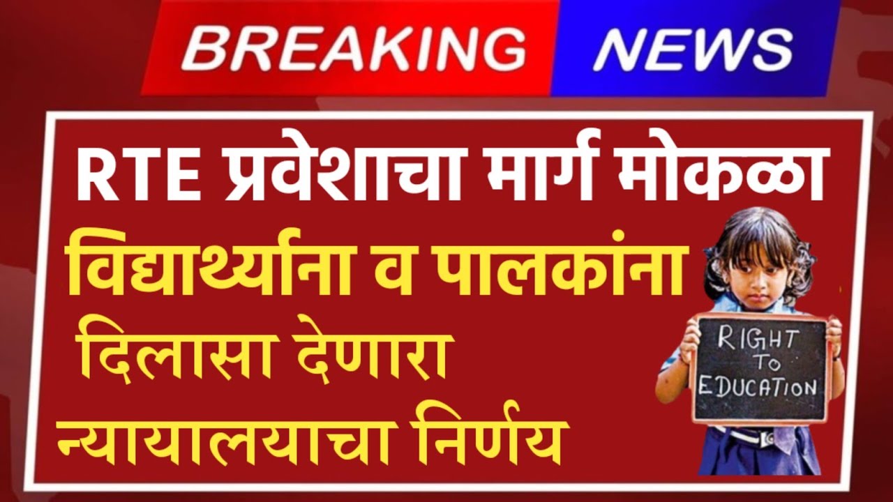 RTE प्रवेशाचा मार्ग मोकळा,न्यायालयाचा विद्यार्थ्यांना दिलासा देणारा निर्णय